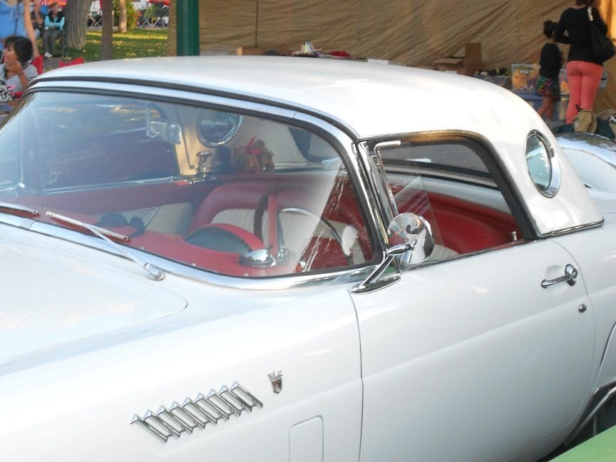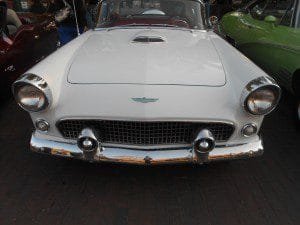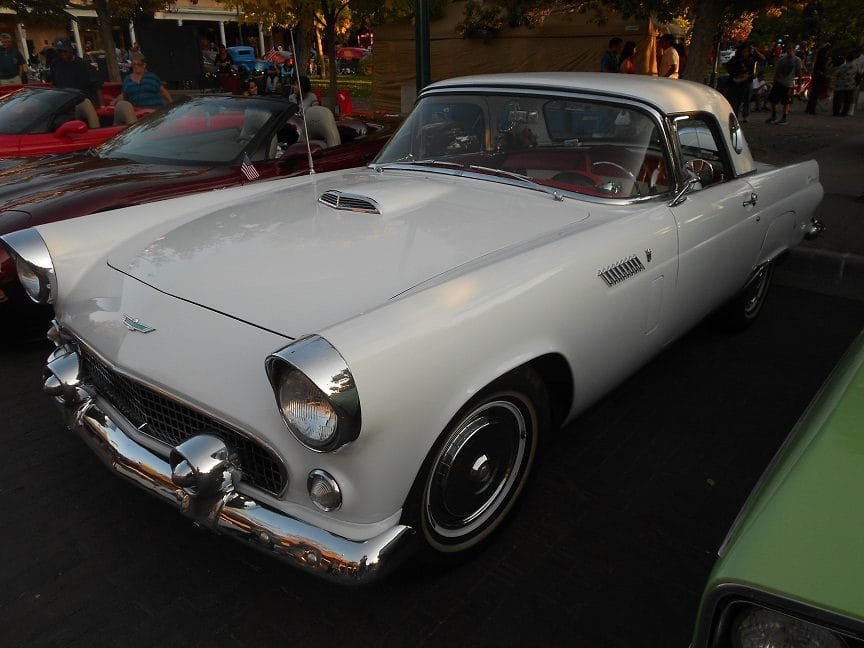 The Corvette was also modeled in many ways toward the European idea of a racing car. The Ford Thunderbird on the other hand presented a “California flavor” in auto design. The Thunderbird was really built more like a mid 1950’s convertible than a true sports car. Ford’s Thunderbird was in the “personal luxury” class. While the Corvette had such true sports car features of the time such as no exterior door handles, the Thunderbird had these as well as roll up windows and a fold down convertible top. Such cars had a sportier feel that sedans, but they were not all-out sports cars. Some contend that the design of the 1955 Thunderbird ushered in an era of a totally different class of car. It was a luxury personal car that a “banker could drive to work”. It wasn’t a luxury sedan but a luxury two seater.