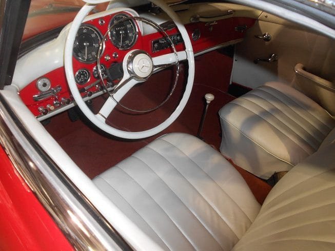 The car shown in this article is the 1957 Mercedes-Benz SL190 which was an is a popular vintage sports car. The 1957 Mercedes was the automaker’s first widely sold sports car. The S represented “Sports” and the L meant “Light“. The SL190 was sold at the same time buyers could purchase the more costly but faster 300SL.
