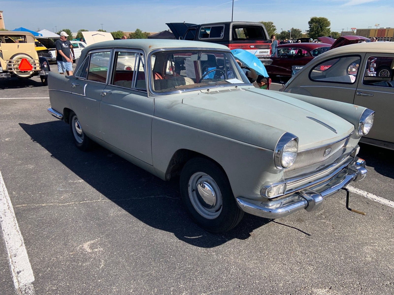 The engine on this 1960 Austin Cambridge is a 1500cc Inline Four Cylinder producing 55 HP. There is also a hand crank backup starter on the car’s front.