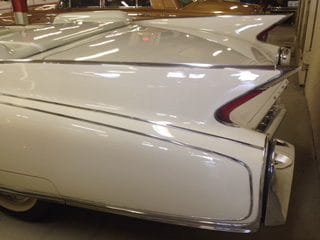 Auto tail fins beginning around 1948 generally kept getting larger and larger through the 1950’s and reached their largest in 1959 with the Cadillac. Tailfins actually grew bolder and larger until they became almost outrageous. The fins were certainly large on the 1960 Cadillac but toned down from 1959. It has always been a given that the 1959 Cadillac receives the credit for the largest fins.