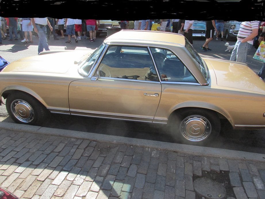 Another you’ll thing you’ll notice right off is it’s somewhat concave styled hard top. This is the hard top that was referred to as the “Pagoda Hard Top“. The roof design was claimed to provide better head room while getting in and out of the vehicle and allowing for larger windows. Engineering wise, the concave roof is said to offer better support in case of a rollover. This was made possible by two thicker pillars. Today, these Mercedes W 113 models and their concave roofs are getting more and more popular with collector’s.