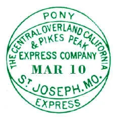 At the start of the Pony Express in 1860, lines from the east reached St. Joseph Missouri. From the west they reached Placerville California in the Sierra Nevada foothills. A Pony Express rider carrying a mochila with telegrams heading west from St. Joseph would drop them off in Placerville where they would then be telegraphed to San Francisco. St. Joseph Missouri would be the terminus for telegrams to be sent further east.