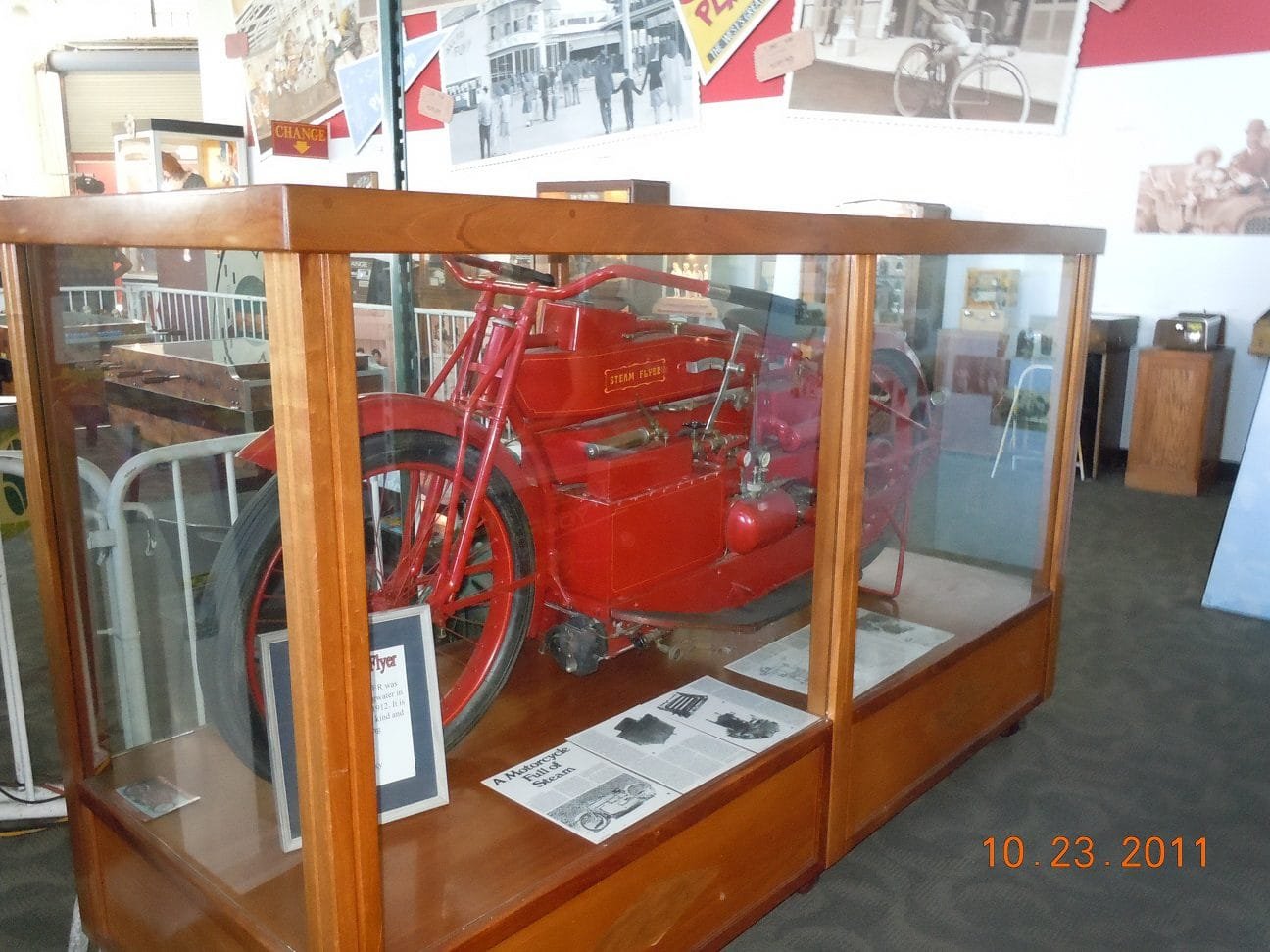 Today, we’re fortunate to have a great example of a steam powered motorcycle on display at San Francisco’s Fishermans Wharf in the Musee Mecanique. This model, called the Steam Flyer and also referred to as the 1912 Gilligan Steam Flyer built in Sacramento California , weighed 350 pounds with a 67 1/2 inch wheelbase. The builder of this unique machine claimed that he could ride 150 miles without requiring fuel or water fill ups although with the size of the two containers, most felt that a fill up would be necessary about every 15 miles or so. There were many upgrades to the motorcycle over the years with a more significant one being the conversion of the burner from vaporization from atomizing. There is also a story around that the French government wanted to buy the motorcycle but the offer was apparently thought too low. Nevertheless, this historic steam powered motorcyle is on display in the Musee Mecanique and is definitely worth the visit to view it. You may also be interested in our article from Western Trips about the famous Steam Flyer on display in San Francisco.