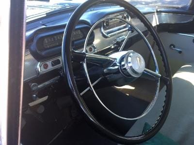 The stylists put chrome it seems anywhere they could. You have to remember though that liberal use of chrome was not uncommon at all during 1957. Take a look at the 57 Buick or 57 Chevy and you’ll see plenty of chrome. We like the styling of the 1957 Hudson Hornet and believe it’s very representative of the latter part of the 1950’s regardless of the fact that it was made on a Nash Ambassador frame. We believe that the 1957 Hudson’s looked best in tri-tone color scheme.