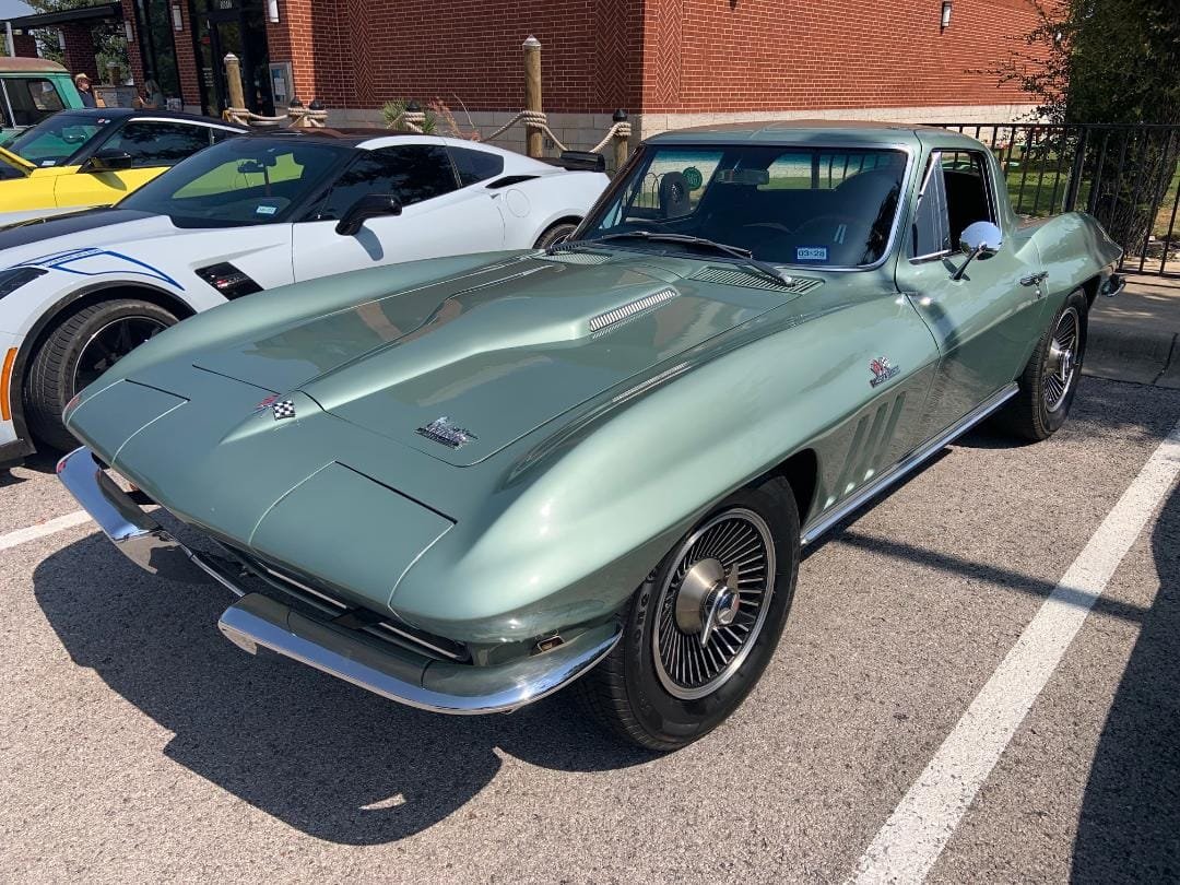 Featured here is a sleek 1966 Chevy Corvette Sting Ray with a 427 Turbo-Jet engine. This was Corvette’s first year with an option for the 427 cubic inch V-8 Turbo-Jet engine. The 427 engine in a Corvette was a big departure from what General Motors management had previously stated… “that no car line smaller than a full-size model would carry an engine larger than 400 cubic inches”. This decision change from management was likely due to the Carroll Shelby Cobra which was delivering big muscle car power.