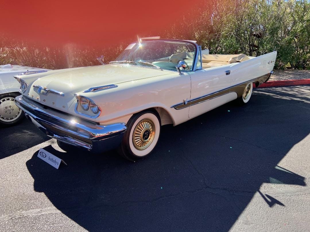 This beautiful 1957 DeSoto Adventurer Convertible has all the modern styling details seen in most late 1950’s automobiles. In addition to flamboyant styling this car had plenty of power with an engine rated at 345 HP. In fact, the DeSoto Adventurer was the first American car to offer one horsepower per cubic inch as standard equipment. In the boom years of the late 1950s, the Adventurer was DeSoto’s top-of-the-line performance car.
