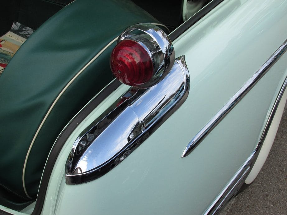 The 1955 Imperial had a more sculpted look to it as opposed to the heavier bodies seen in 1954. New designer touches which gave the new 1955 Imperial a show car look included the tail lights mounted on the rear fenders.