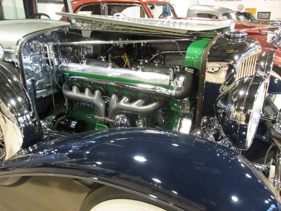 The Duesenberg was built with a 420 cubic inch inline eight cylinder Lycoming engine delivering 265 horsepower. Connected to a three speed manual gearbox, the 1930 Duesenberg was claimed to be able to attain 116 MPH. A pretty good speed for a luxury non race car in 1930.